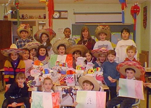 Here you can see my students' piñatas, sombreos, and happy faces! They are all excited to eat the yummy Mexican food while listening to music. What a wonderful culmination of a unit!